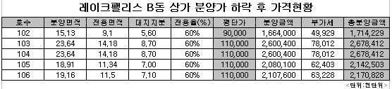 기존 1층 평당 분양가가 1억2,000만원~1억3천만원이었지만, 분양가 조정 후 현재는 9,000만원~1억1,000만원으로 떨어졌다.