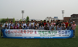 수원시약 축구단은 지난 6일 수원공고 인조단지 구장에서 탁재훈 씨가 단장으로 있는 연예인 축구단 뷰렛시스템과 친선 축구경기를 가졌다.