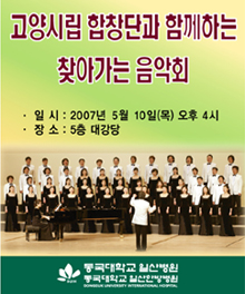 이번 음악회는 아픔으로 고통 받고 있는 환자와 그 가족에게 아름다운 노래를 선물, 병마에 지친 마음을 함께 나누기 위해 병원측에서 마련한 행사.