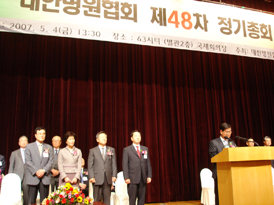 그러나 정작 이날 총회에 참석한 이 부의장은 “축하 말씀을 전하게 된 것을 기쁘게 생각한다"며 "우리나라 병원계의 불합리한 규제가 개선되지 않은 만큼 낮은 보험수가와 의료서비스체계 개선을 위한 해결책 마련이 시급하다”고 덕담을 했다.