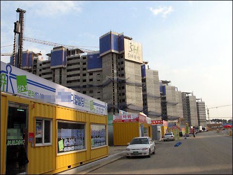 이들의 평당 분양가는 4,000만원~4,900만원. 한 건물을 지나쳐 6단지 쪽으로 가까워질수록 200여만원씩 분양가가 떨어지는 모습을 보였다.