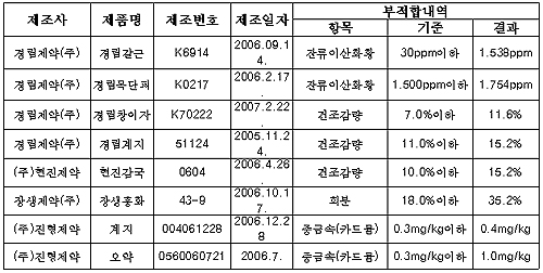 - 서울식약청, 부적합 품목 회수조치...유통중지 당부