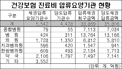 한편 건강보험공단은 지난해 국세 등 각종 세금과 전기·수도 등 공공요금, 사회보험료 등을 체납한 요양기관 244곳의 진료비에 압류채권 123억원이 청구됐다고 밝혔다.