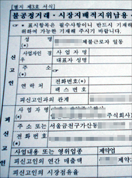 이 신고서는 15일자로 공정위 서울사무소에 접수됐으며 16일 경쟁과로 이첩돼 현재 조사관이 배정된 상태다.