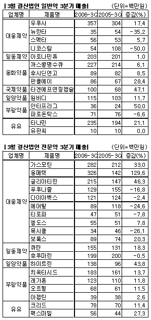 반면 작년 비급여 품목으로 전환된 대웅제약 뉴란타는 35.2% 감소한 35억원을, 삼양사가 한독약품과 판권계약을 추진 중인 니코스탑은 50% 떨어진 54억원으로 집계됐다.