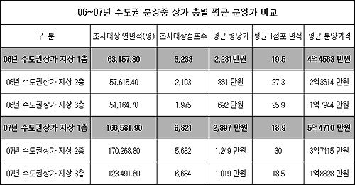 상가뉴스레이다의 정미현 연구원은 “이는 지난해 초에 비해 수도권 상가의 분양가가 신흥 택지개발지구 근린상가 및 단지내 상가를 중심으로 크게 상승했기 때문”이라고 분석했다.