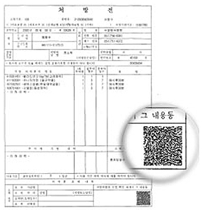 2차원 바코드에는 처방전 교부일자, 교부번호, 요양기관번호, 의사명, 약 이름, 보험코드 등이 모두 포함된다. 즉 약국에서 처방전을 스캔만 하면 처방입력 정보가 자동으로 약국청구 프로그램에 입력되게 된다.