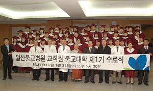수료식에는 이석현 의무원장, 이원철 한방병원장, 이명묵 기획조정실장, 직장불교대학 강사인 조용길 동국대 불교대학원장, 동국대 불교학과 김종욱 교수, 1기 수료생 등 50여명이 참석했다.