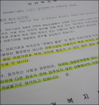 복지부 의료정책팀은 최근 의료기관 개설과 관련한 민원회신에서 "의료기관과 약국간의 전용의 통로라 함은 의료기관과 약국 이용자만 독점적으로 이용하는 통로뿐 아니라 의료기관의 이용자가 특정 약국의 주된 이용자로 될 수 있도록 해당 의료기관과 약국 사이에 통로가 나 있는 경우도 전용의 통로로 볼 수 있다"고 밝혔다.