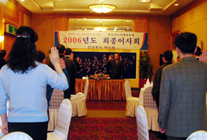 총 이사 52명 중 40명이 참석한 이날 이사회는 2006년도 추가경정예산(안), 회관건립기금, 2006년도 세입·세출 결산, 연회비, 2007년 사업계획(안), 2007년도 세입·세출 예산(안) 등이 상정됐다.