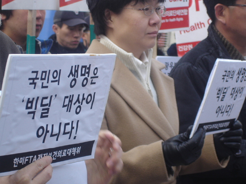 한미 FTA 저지 보건의료대책위와 지적재산권공대위는 17일 공동회견을 갖고 “국민의 생명은 FTA 거래조건이 아니다”면서, “광우병 소고기 수입조건 완화와 무역구제-의약품·자동차 빅딜에 반대한다”고 밝혔다.