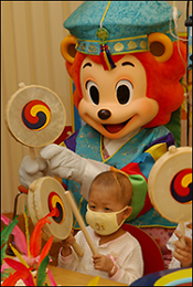 에버랜드 ‘희망대축제’ 캐릭터인 라스타와 라이라가 어린이 환자들을 방문해 소고연주, 제기차기, 투호놀이 등 민속놀이를 가르치는 시간을 가졌으며 중증 소아암 환자들에게는 캐릭터 인형가방과 색연필을 선물로 전달했다.
