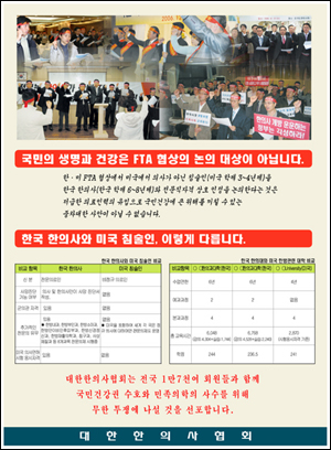 한의협은 이날 보도자료를 통해 “한미FTA 협상에서 미국의 비정규의료인력인 침술사와 한국의 정규의료인력인 한의사간 전문직 자격 상호인정 여부를 논의하는 것은 본래 의제가 아니었다”며 “이에 대한 논의를 진행하는 것은 부당하다”고 강조했다.