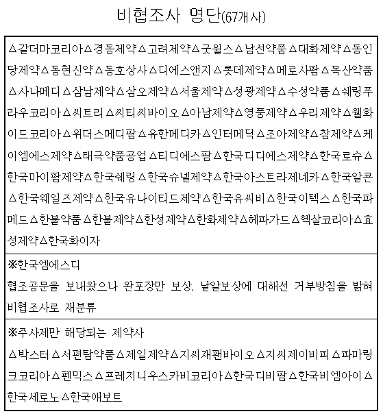 이들 비협조사 명단 중에는 화이자, 아스트라제네카, 로슈 등 주요 다국적제약사도 포함되어 있다.