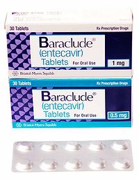 바라크루드는 B형간염 바이러스(HBV)의 복제를 억제함으로써 바이러스의 세포감염 능력을 저하시키는 경구 투여용 항바이러스제로 0.5mg의 보험약가는 7,333원, 1mg은 9,450원이다. 이 치료제는 활동성 바이러스의 복제가 확인되고 혈청 아미노전이효소(ALT/AST)의 지속적 상승 또는 조직학적으로 활동성 질환이 확인된 16세 이상 성인 만성 B형간염 치료를 위해 사용된다.