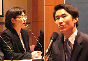 13일 코엑스 컨벤션센터에서 열린 '의약품법규학회'에서 패널 토론자로 나선 노바티스 이관숙 팀장과 식약청 신준수 사무관의 국내 의약품 법규에 대한 미묘한 입장차이가 참석자들의 눈길을 끌었다.