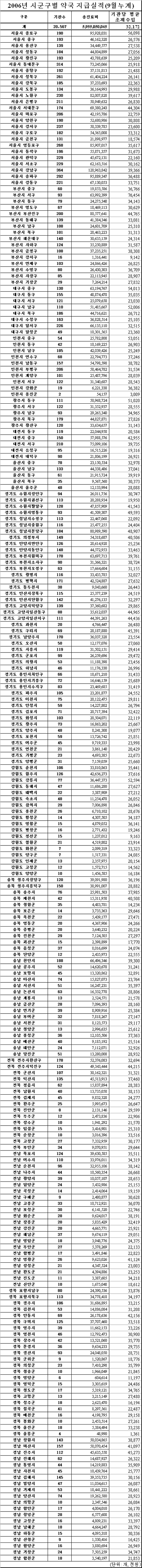 반면 하위 10위권에는 울릉군 외에 인천옹진(81만원), 부산강서(247만원), 강원정선(148만원), 경북영양(303만원), 충북청원(385만원), 강원고성(394만원), 강원양양(438만원), 경북성주(439만원), 경남산청(445만원) 등이 최하권을 형성했다.