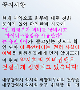 대구시약사회도 회비를 낭비하고 마이너스 통장을 사용하고 있다는 유언비어를 확인하려는 약사들의 문의가 접수됐다며 사실이 아니라고 강조하고 나섰다.