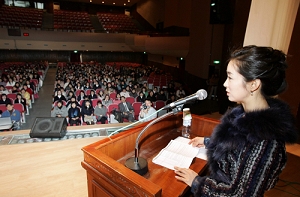 20년전 숙명재단을 졸업한 윤씨는 이날 일일교사로 나서 새로운 출발을 앞둔 후배들에게 격려와 함께 자궁경부암 정기검진의 중요성을 강조했다.