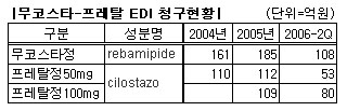 무코스타정은 2006년 상반기 청구액만 108억원을 기록한 대형품목으로 연평균 10% 중반대의 성장률을 기록하고 있다.
