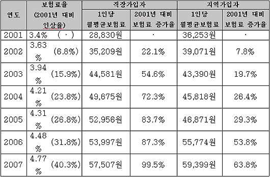 한나라당 전재희 정책위의장과 고경화 제6정조위원장은 지난 1일 정책성명을 통해 “정부는 지난 2001년 이후 6년 사이 건보료율을 40% 이상 인상했고, 같은 기간 동안 직장인은 1인당 월평균 2배 이상의 부담이 늘었다”며 이같이 주장했다.