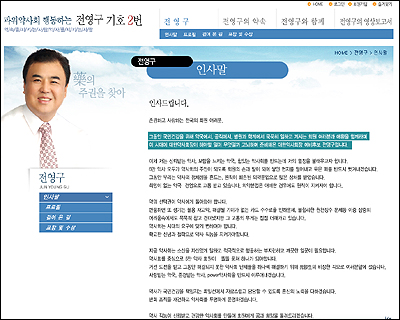 눈에 띄는 것은 '영상보고서 코너', 사진보고서에서는 가족사진을 비롯해 이회창 전 한나라당총재와 찍은 사진, 전영구를 사랑하는 사람들의 모임(전사모) 결성식, 국제학회 참석 모습 등 과거 활동상을 담았다. 영상보고서에서는 약사정책포럼 1,2차 동영상을 올려놓고 정책적인 능력을 보여주려고 했다.