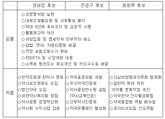 데일리팜이 권태정, 전영구, 원희목 세 후보의 공약을 비교해 본 결과 뚜렷한 차별성을 찾기 힘들었다.