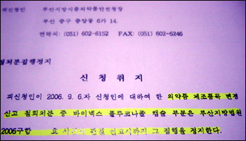 바이넥스는 이같은 식약청의 변경허가 번복에 반발, 부산식약청을 상대로 행정처분 집행정지와 본안소송을 지난달 제기했으며 이중 집행정지 부분을 법원이 받아들인 것이다.