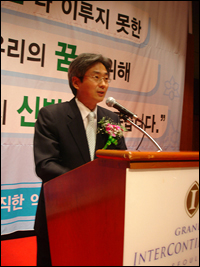 원 후보는 13일 오후 삼성동 그랜드인터콘티넨탈호텔 2층 그랜드불룸에서 500여명의 참석자가 참석한 가운데 후원회를 열고 자신의 출마각오를 밝혔다.