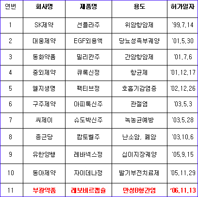 1995년부터 11년에 걸쳐 약 900억원을 들여 개발한 이 약에 대해 식약청은 임상시험 결과 평가를 지난 7월말 완료하고, 발암성 시험 자료가 9월초 제출돼 시험기관에 대한 신뢰성 조사를 거쳐 최종 시판 허가하게 됐다고 전했다.