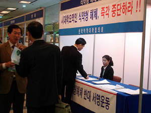 대한약학회는 6일 추계학술대회가 열리는 서울교육문화회관에서 별도의 부스를 차려놓고 학술대회 참석자들에게 일일이 서명작업과 함께 '식약청 해체는 돌이킬 수 없는 역사적 후퇴'라는 제하의 유인물을 배포했다.