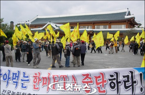 정북농민회 총연맹 전북도연맹 이광석 의장은 "한미 FTA 협상이 민족경제를 파탄낼 것이다"라며 "이 협상은 졸속적으로 밀실에서 이뤄지고 이해관계 세력을 차단한채 진행되고 있기 때문에 협상을 즉각 중단해야 한다"고 주장했다.