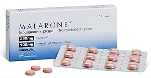 말라론은 말라리아 예방 목적으로 복용할 경우 메플로퀸이 여행 1~2주전부터 여행 후 4주 가량의 복용기간을 필요로 하는 것에 비해 출발하기 1일 내지 2일전부터 여행 후 1주일까지 복용하면 되기 때문에 더 편리한 장점도 있다.