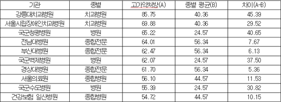 국공립병원 49곳 고가약 처방비중 높다