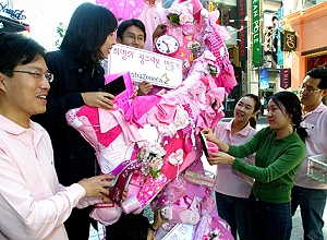 전립선암과 유방암에 해당되는 파란색 및 핑크 리본을 매는 이들 행사는 각각의 질환에 대한 인식을 높여 치료제 사용을 도울 뿐만 아니라 해당 제약사를 각인시키는데도 효과적인 역할을 한다.