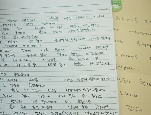 P씨는 라인 편지지에 자필로 쓴 글에서 “이렇게 환불될 수 있는 큰 돈이 있었다면, 며칠이라도 1인실서 마음 편히 있게 해주었을 텐테...”라면서 경제적인 이유로 마지막까지 정성을 더하지 못한 심정을 자책했다.