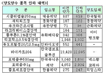 양도양수 의약품 11개품목 가격인하 강행