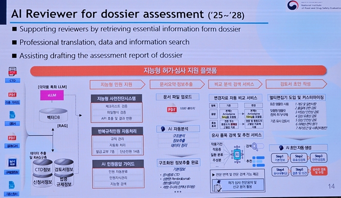 김 연구관은 “타임라인으로 보자면 2026년도에는 품질 중에서도 불순물 파트 심사 과정에서 데이터를 추출하고 요약, 허가사항을 비교표로 분석하는 업무를 연구한다. 그 다음 안전성 유효성 자료까지 AI를 적용하면 어떻게 되는 지에 대한 연구가 이어질 것”이라고 밝혔다.