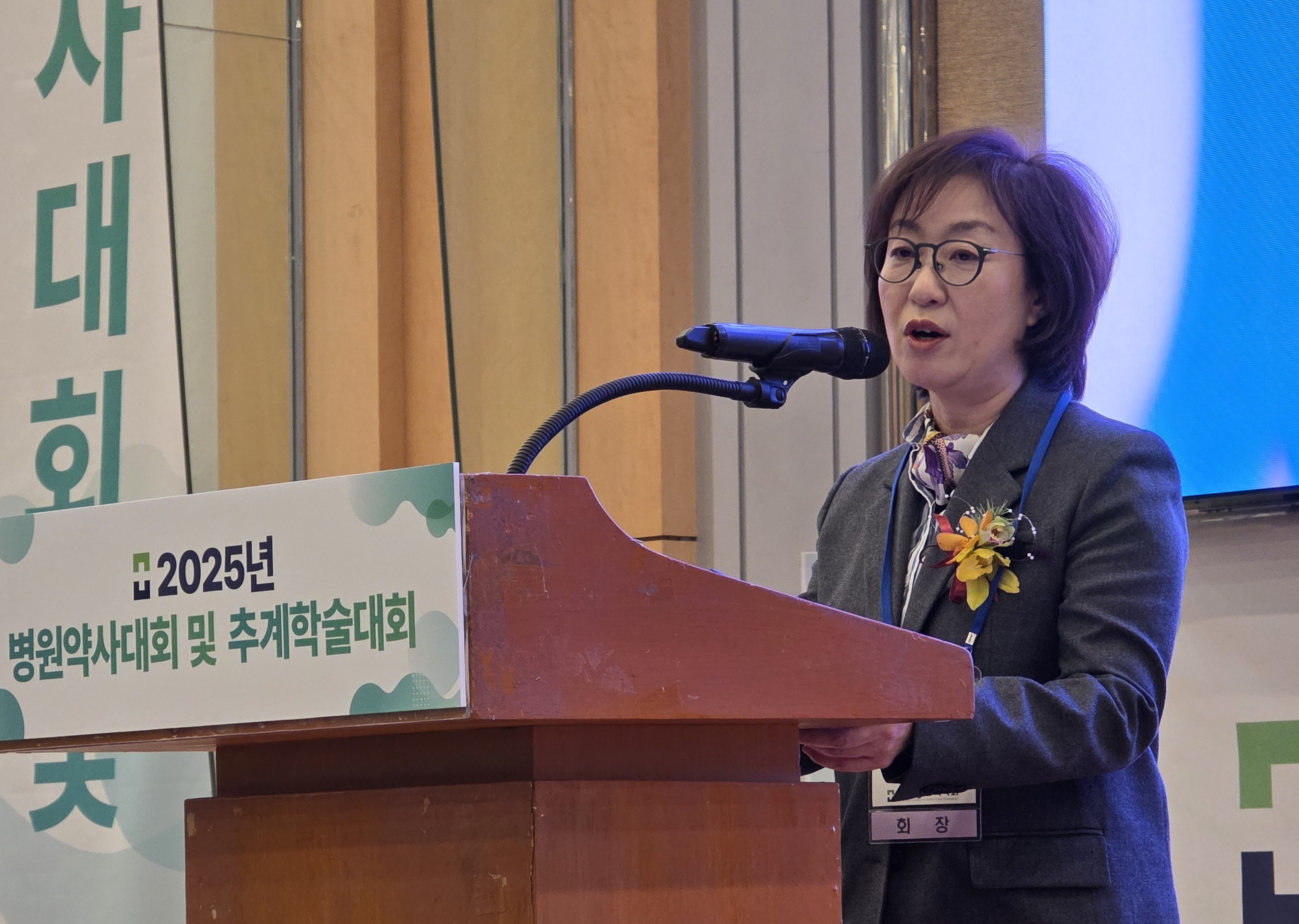 김상봉 식약처 의약품안전 국장은 오유경 처장의 축사를 대독하며 “병원약사회는 40년 넘게 국민 건강 최일선에서 환자 치료와 질병 예방을 위해 헌신해 왔다”면서 “오늘 학술대회를 통해 지속 가능한 환자 중심 치료와 안전 사용 문화 확산을 위해 함께 고민하는 소통의 장이 되길 바란다”고 말했다.