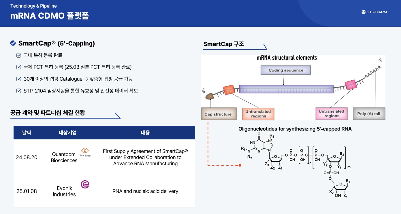 에스티팜은 올해 들어 mRNA와 차세대 RNA 치료제 분야에서 존재감을 본격적으로 드러내고 있다. 회사는 올해 TIDES USA 2025와 CRISPR MEDiCiNE 2025 등 RNA·유전자 치료제 분야를 대표하는 국제 학회에 연이어 참가하며 적극적인 대외 행보에 나섰다. 해당 학회에서 에스티팜은 mRNA 관련 자체 플랫폼을 소개하고 gRNA 등 mRNA 플랫폼 응용 범위를 유전자치료제 영역까지 확장하겠다는 중장기 전략과 비전을 제시했다.