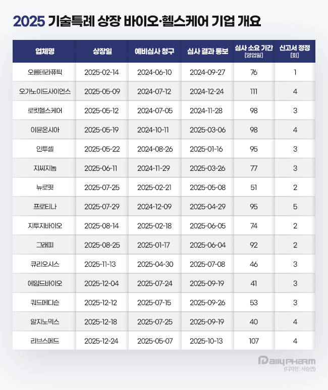 [데일리팜=차지현 기자] 2025년 바이오 기업공개(IPO) 시장을 관통하는 키워드는 '속도'와 '선별'이다. 올해 기술특례상장 기업에 대한 한국거래소 예비심사 기간이 전년 대비 30% 이상 단축됐다. 그동안 유명무실했던 45영업일 심사 규정을 준수한 사례도 등장했다.