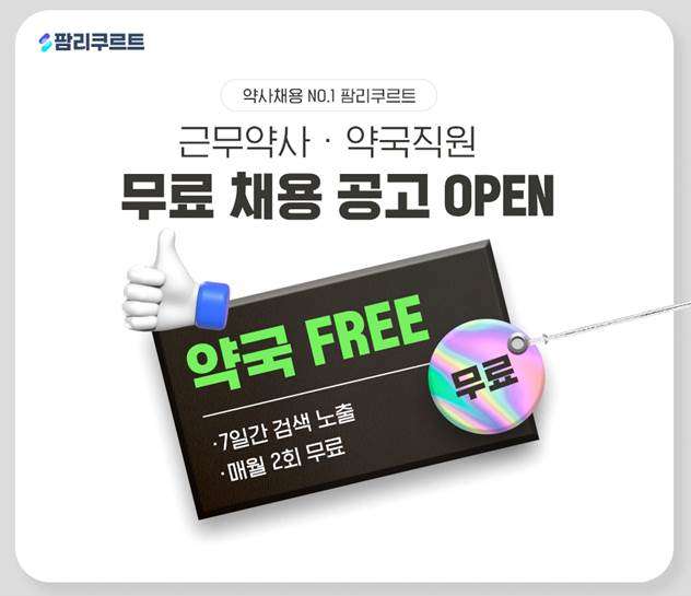 약사채용 1위 팜리쿠르트, 약국대상 무료공고 오픈
