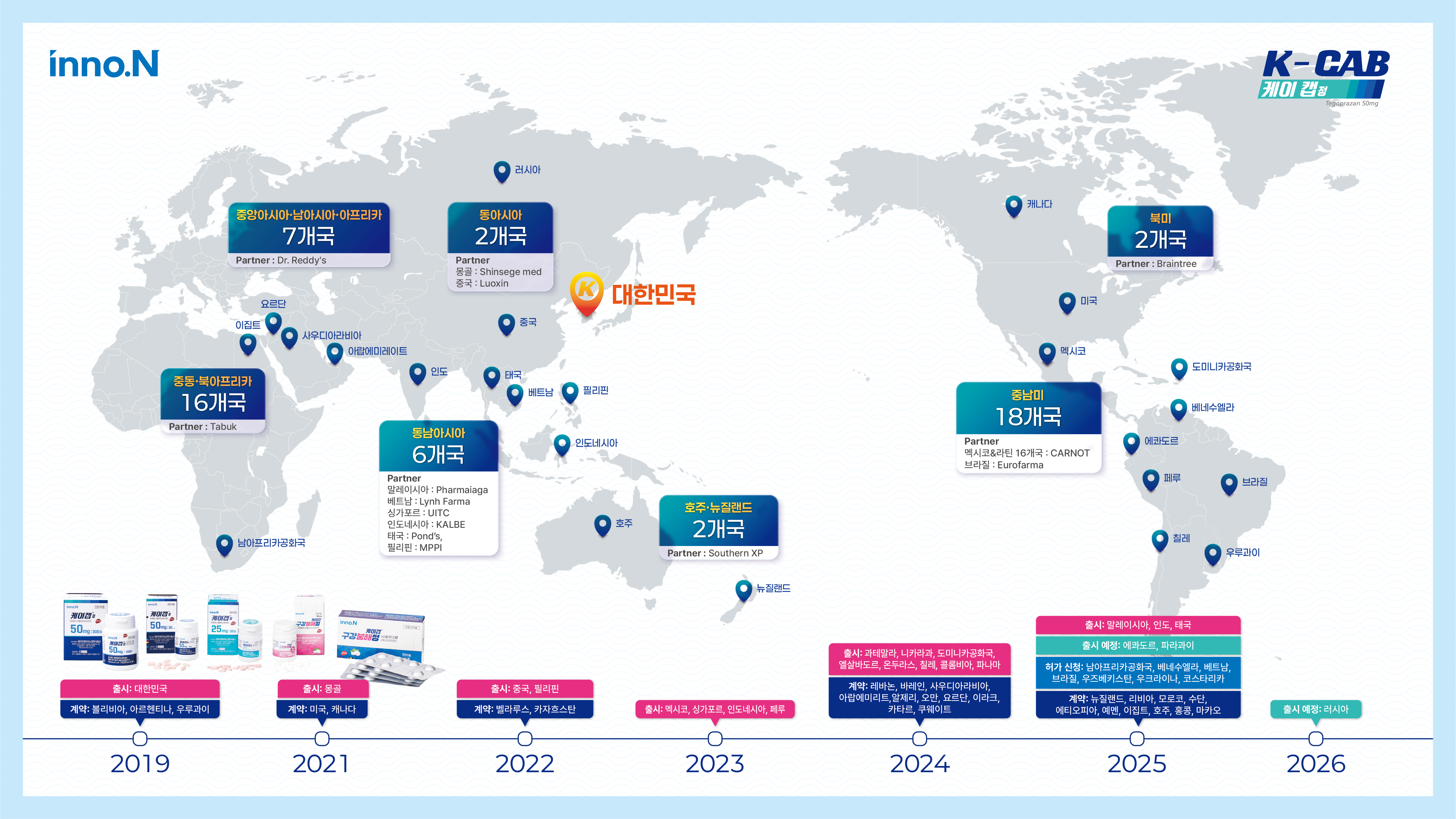 지난해 9월에는 세계 4위 시장인 인도에서도 케이캡을 출시했다. 인도 소화성 궤양용제 시장은 1조5200억원 규모로 인도 인구의 약 38%가 위식도역류질환을 앓고 있는 것으로 알려져 있다. 앞서 케이캡은 지난 5월 인도 규제당국으로부터 '피캡'이라는 이름으로 품목허가를 획득했다. 글로벌 제약기업 닥터레디가 현지 영업과 마케팅을 담당하고 있다.
