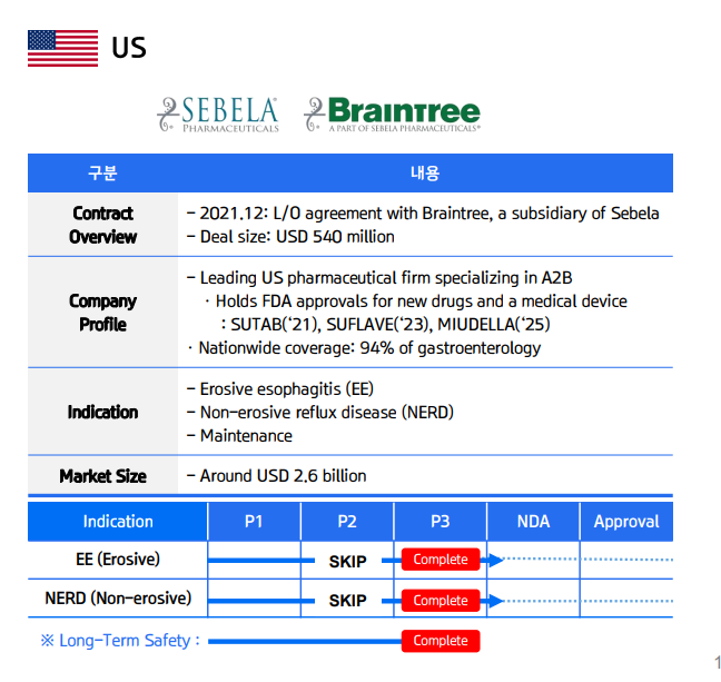 미국 시장에서는 이미 동일 계열 신약이 먼저 진입해 시장 내 입지를 넓히고 있다. HK이노엔은 경증부터 중증까지 아우르는 임상 데이터와 처방 범위를 극대화한 적응증 다변화 전략을 앞세워 미국 시장 공략에 나설 전망이다.