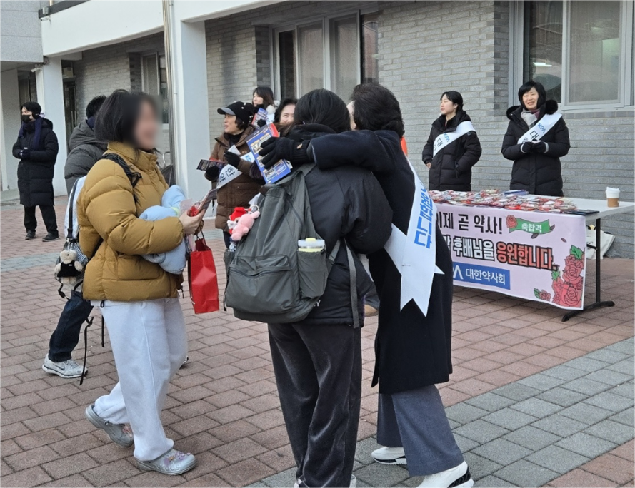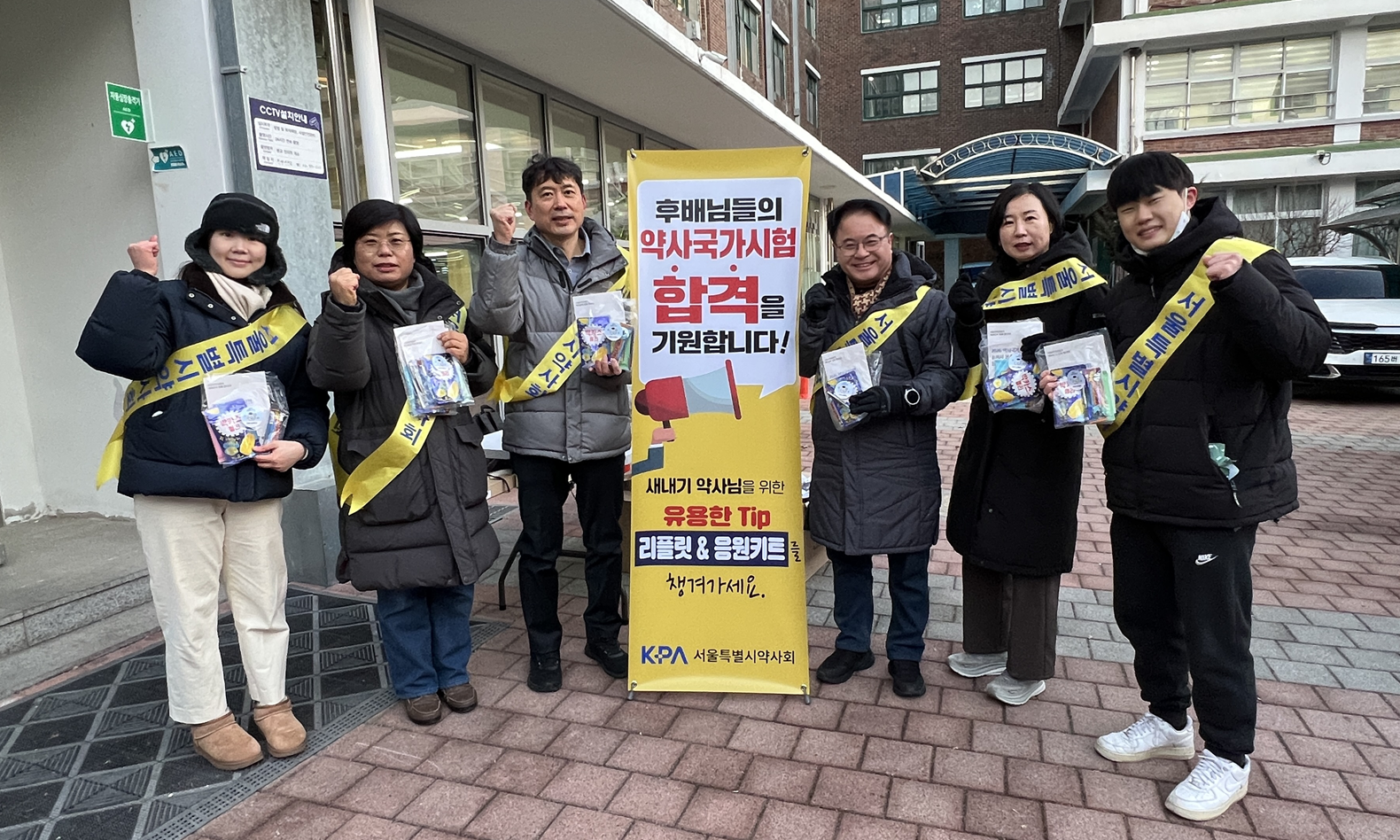 동국대학교 약학대학 김대윤 학생회장(4학년) 역시 "100% 합격을 기대한다"면서 물과 간식류, 핫팩을 전달했다.