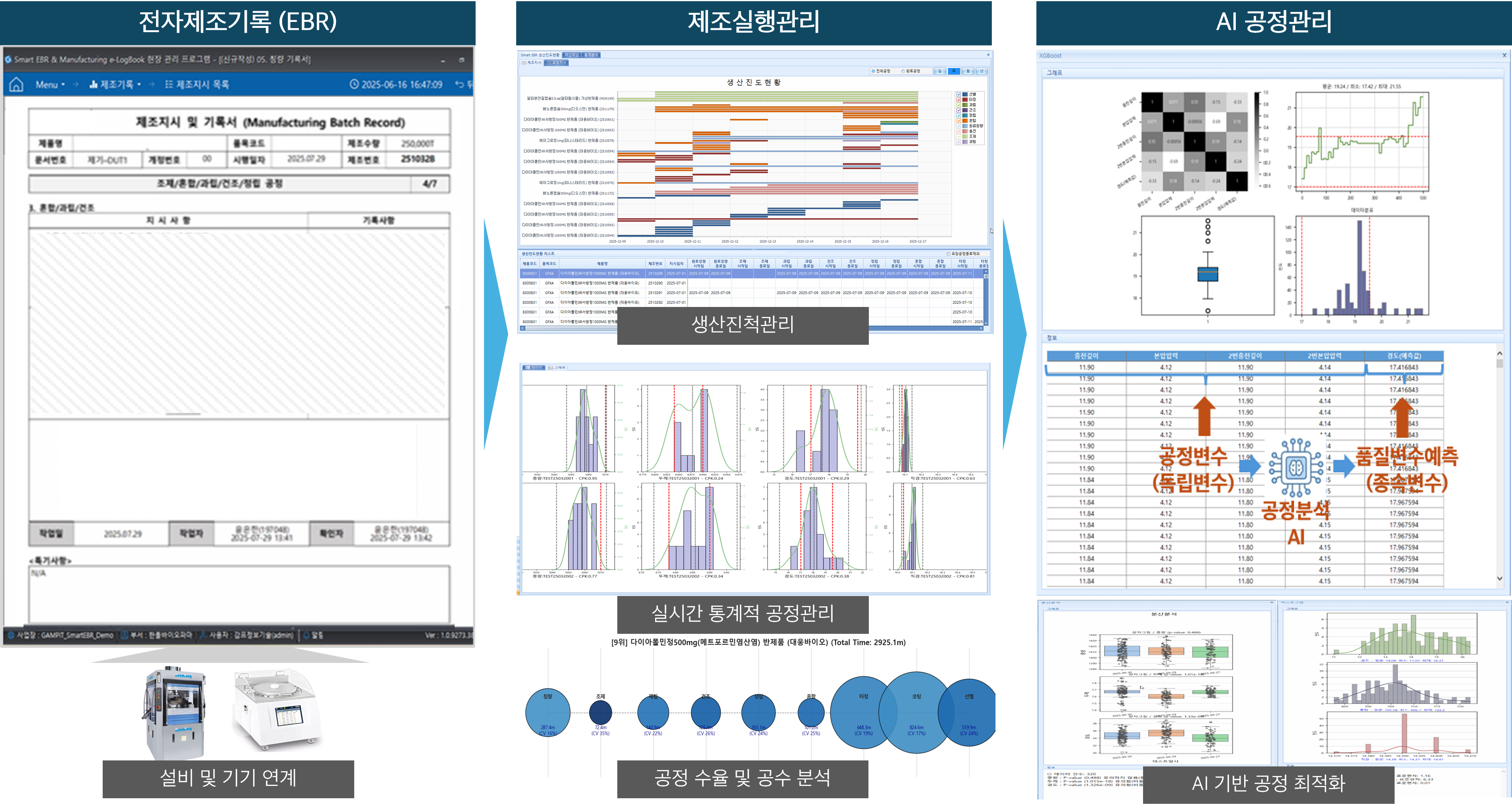 이런 상황에서 제약·바이오 분야 IT 전문업체 감프정보기술은 EBR 기반 MES·e-Logbook·WMS로 통합된 제조 데이터를 토대로 AI 예측 분석 모델을 적용하고 있다.
