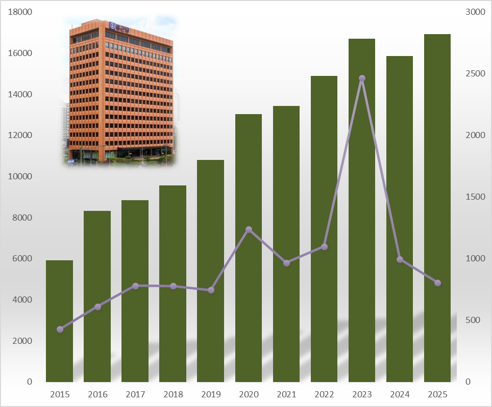 종근당의 작년 매출은 역대 최대 규모다. 지난 2023년 매출 1조6694억원에서 이듬해 1조5864억원으로 5.0% 줄었지만 지난해 반등하며 2년 만에 신기록을 경신했다. 지난 2024년에는 기술수출 계약금 회계 인식에 따른 기저효과로 매출이 감소했다.