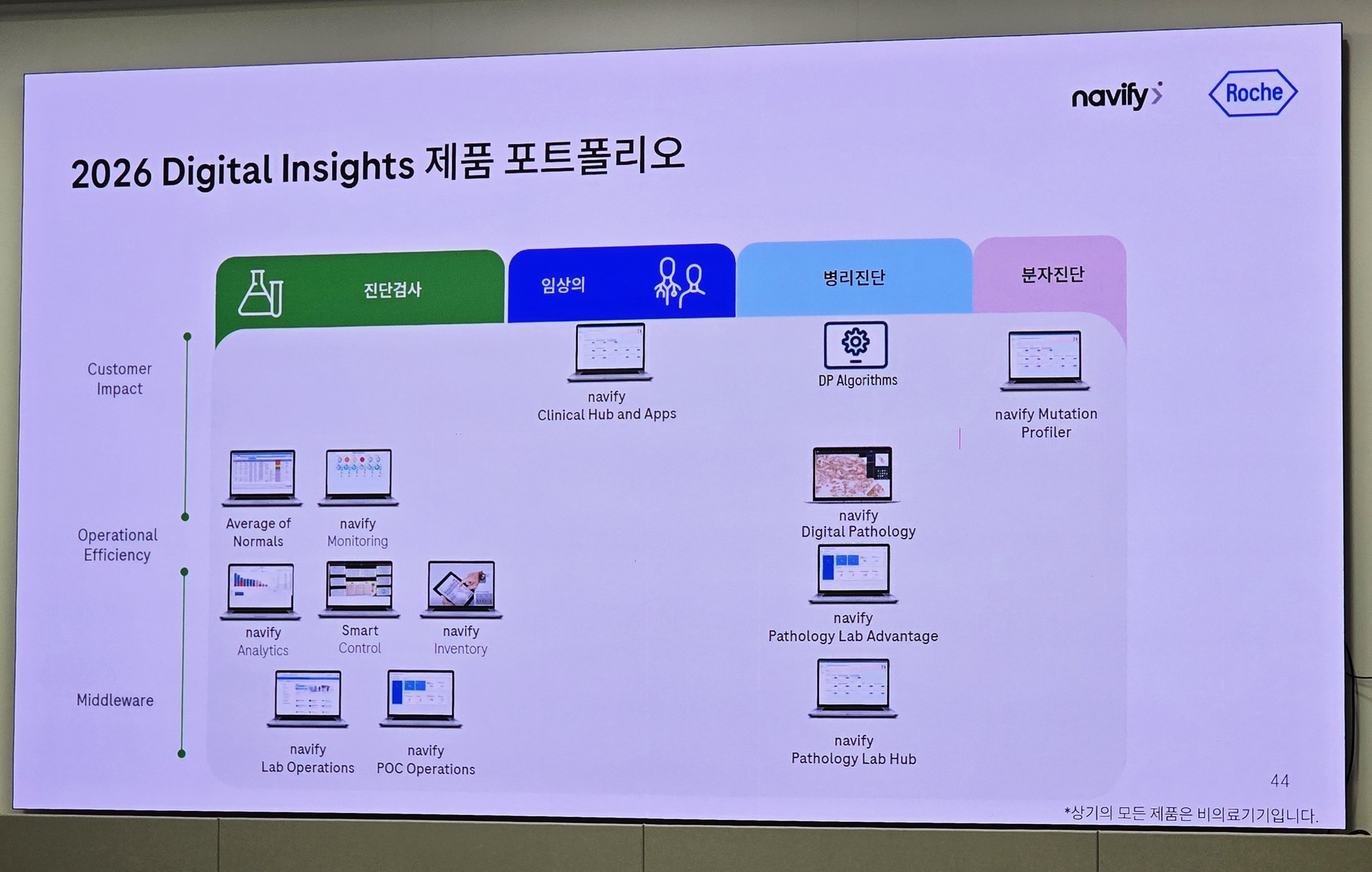 실제 네비파이 기반 제품군은 진단검사과를 중심으로 시작해 현재는 임상의, 병리진단, 분자진단으로 확장되고 있다.