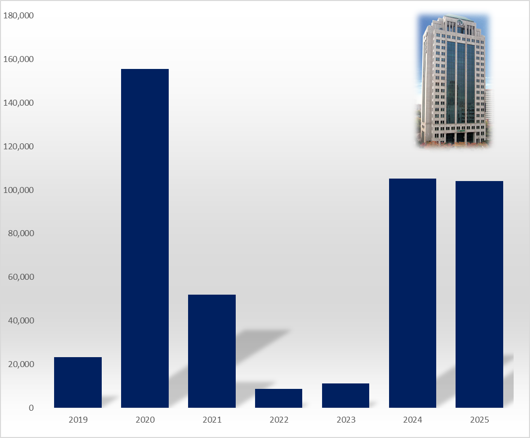 지난 2019부터 지난해까지 7년간 분기별 영업이익을 보면 지난해 2분기에 가장 많은 499억원을 올렸다. 이때 렉라자의 일본 진출 성과에 따른 마일스톤이 반영되면서 기술료 수익 255억원이 유입됐다. 2024년 3분기에 476억원의 영업이익을 올렸는데 렉라자의 미국 허가로 982억원의 기술료 수익이 발생했다.