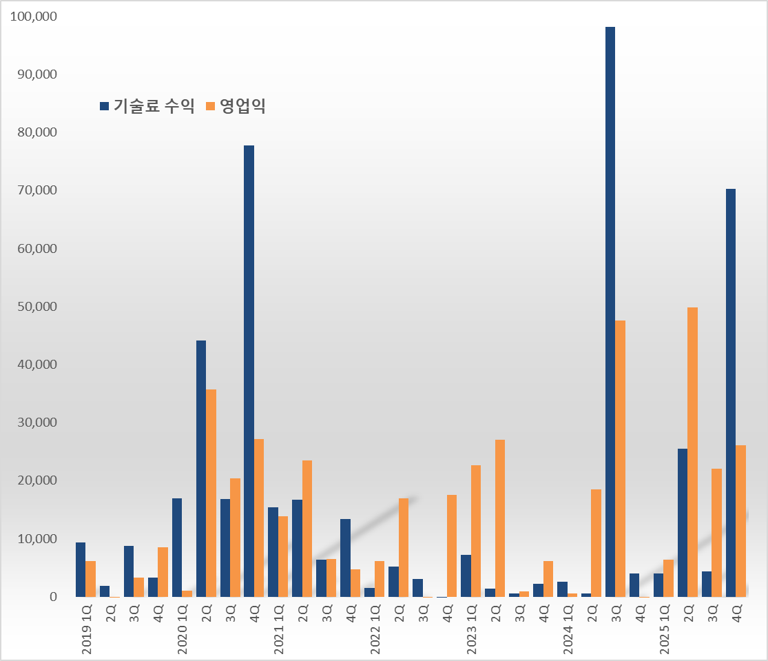 - 기술료 수익 규모와 영업익 비례...작년 2Q 최다